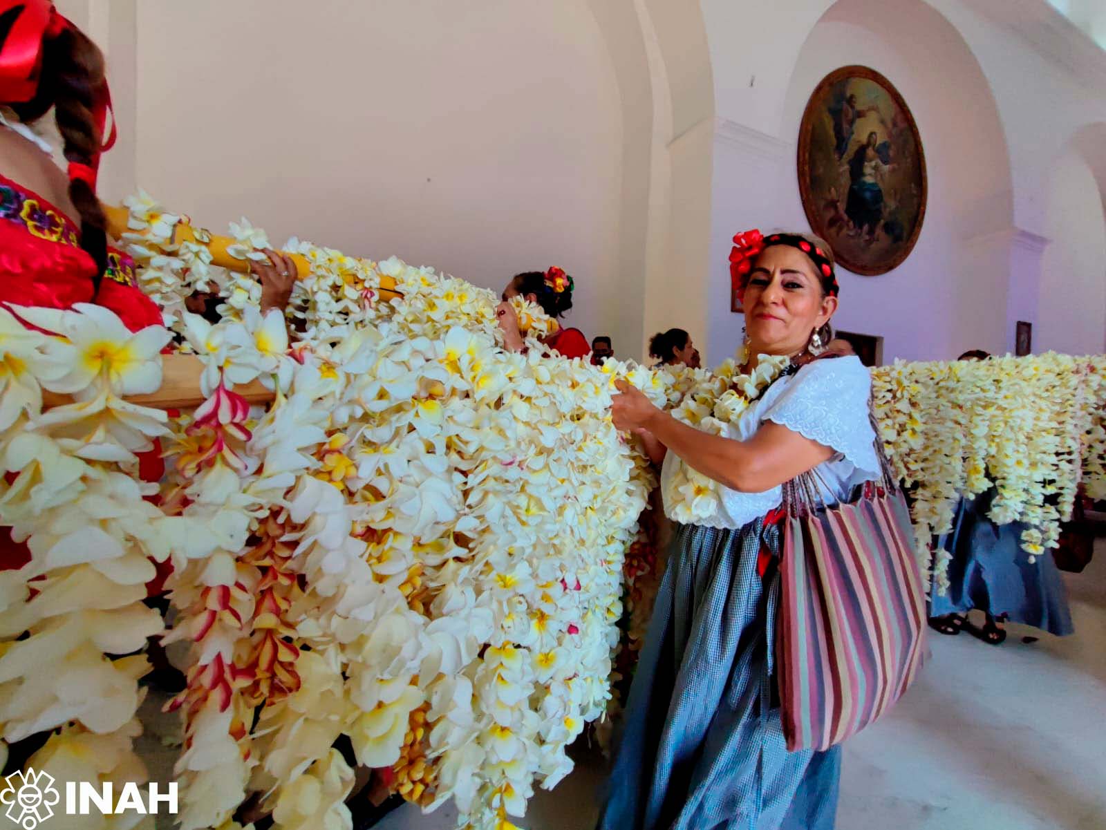 Another cherished expression is the “Ensarta de Flor de Mayo” (Stringing of May Flowers), where men and women dressed in traditional Tuxtla attire gather in the central courtyard of the Municipal Palace to create long floral garlands, later carried in procession to the Cathedral — reaffirming the bond between the community, its environment, and its traditions.