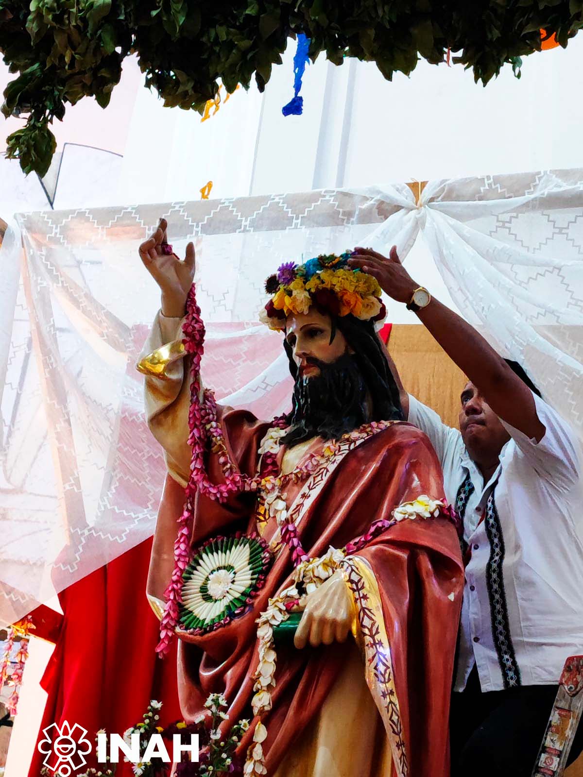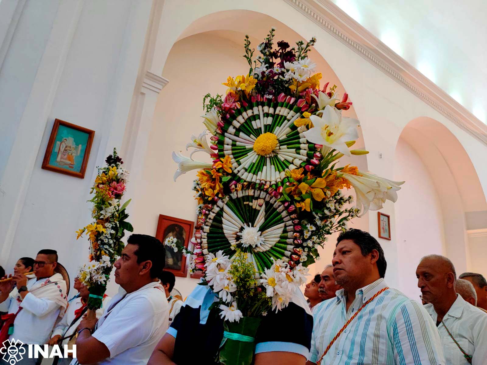 Among the most representative traditions are the Entrance of the Bouquets or joyonaqués in the Zoque language, and the Coronation of San Marcos Evangelista, led by the Zoque Stewardship of the Virgin of the Rosary. During the procession, participants present the saint with colorful offerings called somés, crafted from leaves, flowers, fruits, bread, and sweets, accompanied by the sound of the drum and reed flute, traditional instruments inherited from the region’s Indigenous peoples.